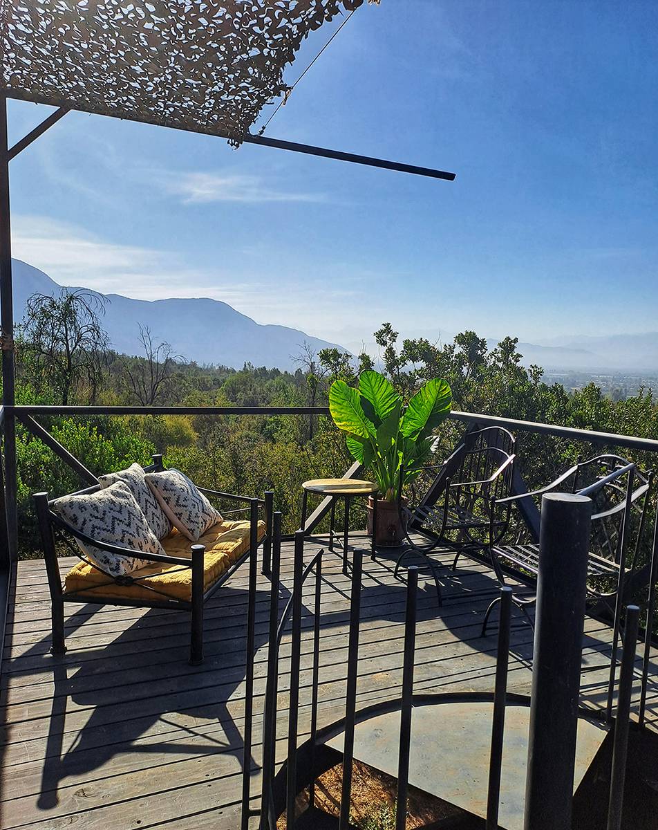 Cuenta con quincho con parrilla a carbón/leña, parrilla a gas, terraza/mirador con vista en 360º en el techo y una piscina con hidromasaje. En los alrededores, también hay varias rutas para realizar senderismo, ya que está a 7 minutos de la Reserva Nacional “Roblería del Cobre de Loncha”, donde se pueden realizar trekking y circuitos de mountain bike, para disfrutar de los senderos y las vistas al valle.